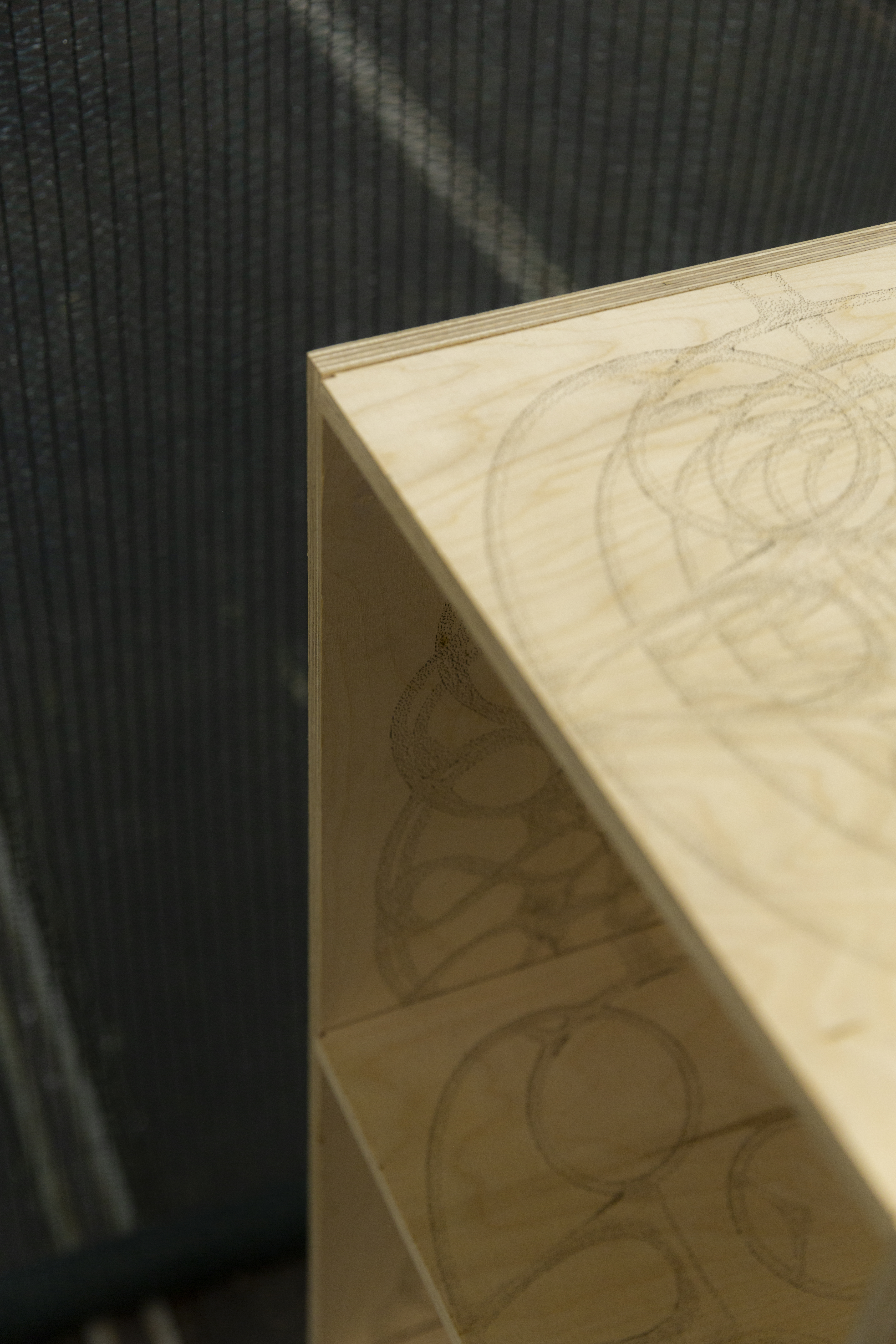While private spaces shrink, another world doubles in size every year: the metaverse. More and more people could flee into virtual reality, where digital space grows, to claim bigger digital spaces to cope with the lack of physical space. If we are using VR like we are using it now, it will need a lot of empty space, rendering all non essential furniture and objects obsolete. Like video games, 3D worlds are not touchable exactly at the borders of their 3D-models: they are separated in invisible hit-boxes and invisible walls. Knowing that one company owns the metaverse, they are directing what we see and how we interact with it. The two pieces are representing basic human needs (storage and rest), with side, front, back and top views of digital, impossible objects projected on simple cubic furniture, are referencing the first 3D models and materialise the invisible hit-boxes onto physical objects.